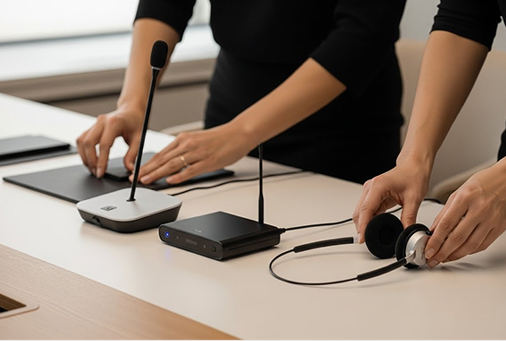 Unimos equipamentos versáteis para tradução simultânea à expertise de tradutores humanos. O resultado é uma